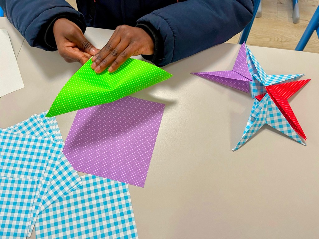 On my first day, my supervisor mentioned that it would be fine to dedicate this week to various preparations. However, eager to get acquainted with the children, I decided to host an origami workshop using the origami paper I brought from Japan. In a workshop that lasted about 30 minutes, we crafted stars together.