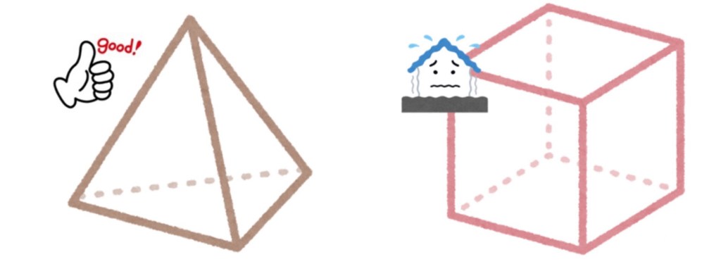 - Create a tetrahedron (a triangular pyramid) and a cube, then verify their stability.